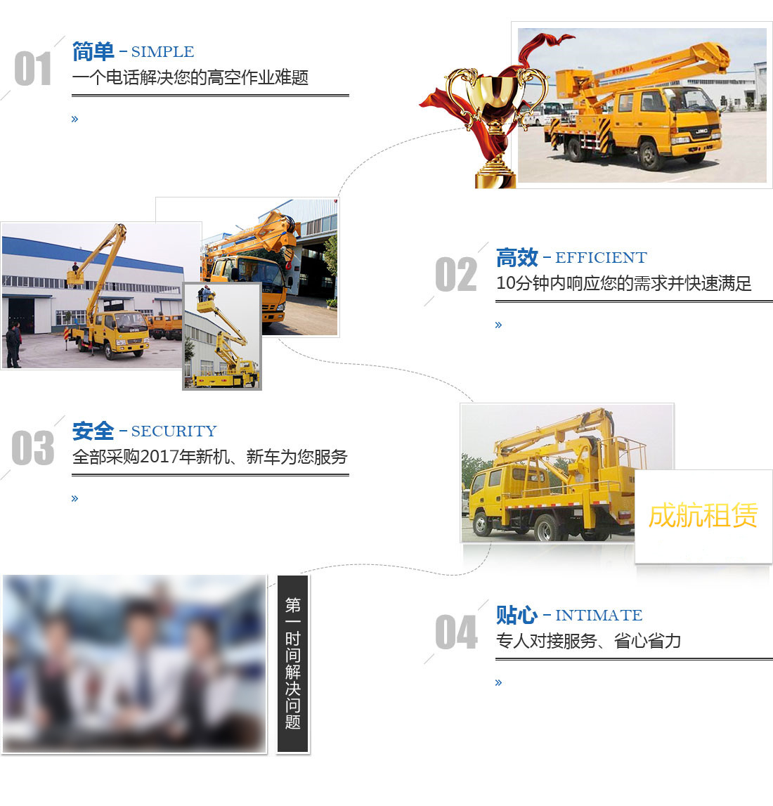 成都成航機械設備租賃有限公司(簡稱成航租賃)是四川地區高空作業車租售業內大,設備新,型號齊全公司之一。本公司為高空作業平臺徐工集團高空作業車在西南地區的授權經銷商,公司******于高空作業車租賃、高空作業車出租、升降車租賃、升降車出租等高空作業平臺的租賃銷售業務,是一家立足四川成都業務遍及中國西部地區專業的高空作業設備租賃銷售公司。公司總部設立于成都,公司現擁有租賃設備1000余臺,并在北京、 南京、濟南、武漢、成都、重慶、昆明、天津等地設有專業的服務團隊;同時公司可將強大的設備資源在全國范圍內調動,派專業人員現場安裝調試、培訓、維護;專業服務團隊確……